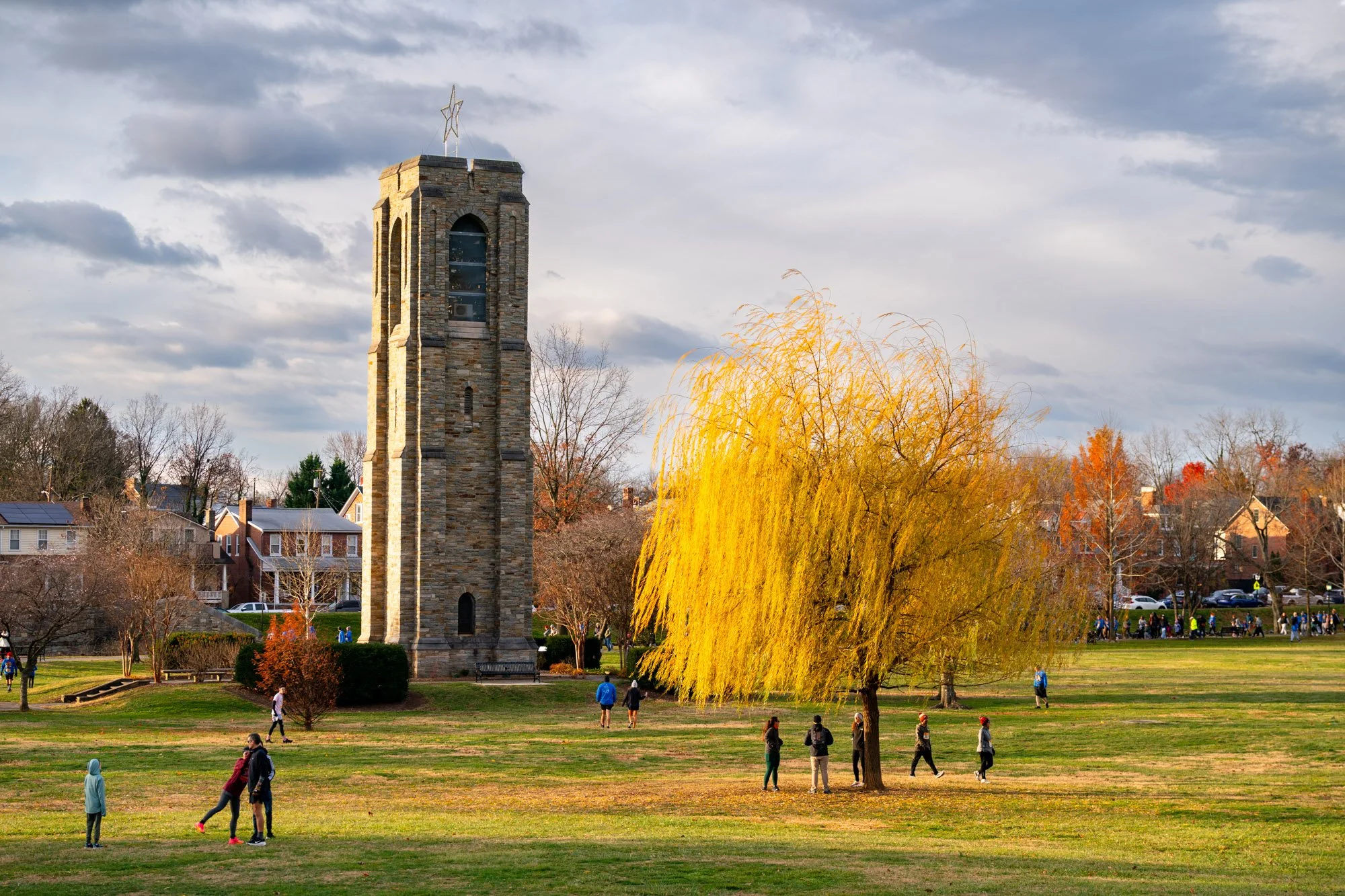 Frederick MD, Downtown Frederick, Baker Park, Carillon Bell Tower, Fountain, Spring